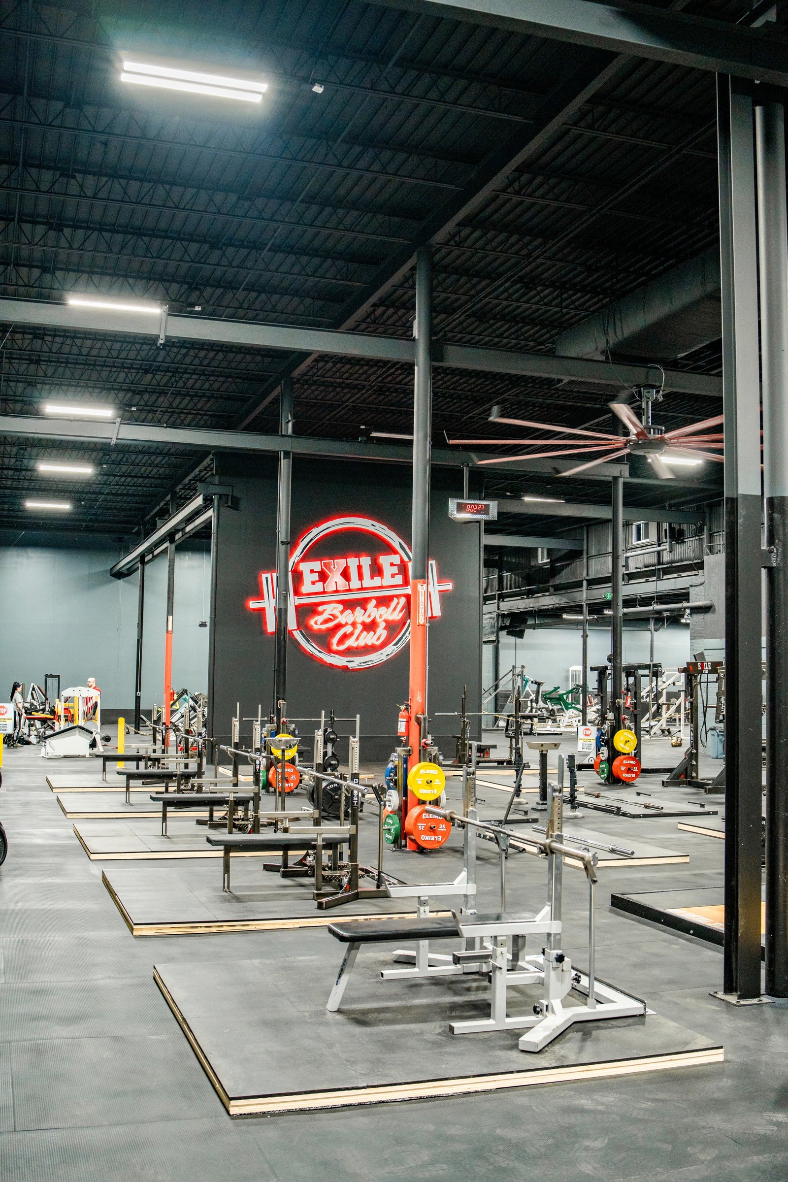 Exile Barbell Club, Where competitive Powerlifters come to push their training limits to the max. Composed of a hefty list of world class athletes, we do our best to equip each athlete with what they need to succeed! From the calibrated Eleiko plates to dozens of specialty bars, this is a top notch training facility that will feed your inner beast!